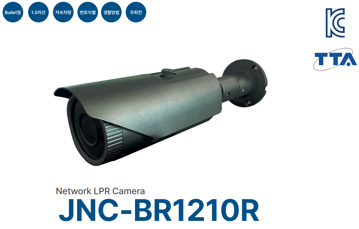 JNC-BR1210R은 뷸렛타입의 소형 CCTV입니다. 생활방범의 넓은 화각에서 야간모드에서 달리는 차량의 번호를 식별할 수 있습니다. 한마디로 가성비 좋고 쌉니다. 이 제품은 고해상도 2메가픽셀 카메라로, 적외선 기능을 통해 어두운 환경에서도 높은 화질로 모니터링이 가능합니다. 따라서 야간에도 번호판을 포함한 세부적인 정보를 식별할 수 있습니다. 또한, TTA 인증을 받은 제품으로 안전하고 신뢰성 있는 효율적 감시를 제공합니다. 제품의 정확한 사양과 기능은 공식 웹사이트나 판매처에서 확인하시기 바랍니다